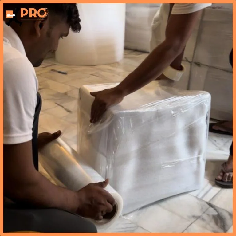 Throughout the moving process, PRO Packers & Movers prioritizes the safety and security of your belongings. Our experienced packaging materials and processes protect your belongings from any potential damage. We employ a variety of protective materials, including waterproof lamination, strong tape, cushioning bubble wrap, long-lasting cargo sheets, insulating polystyrene(thermocol), and solid hardwood boxes.